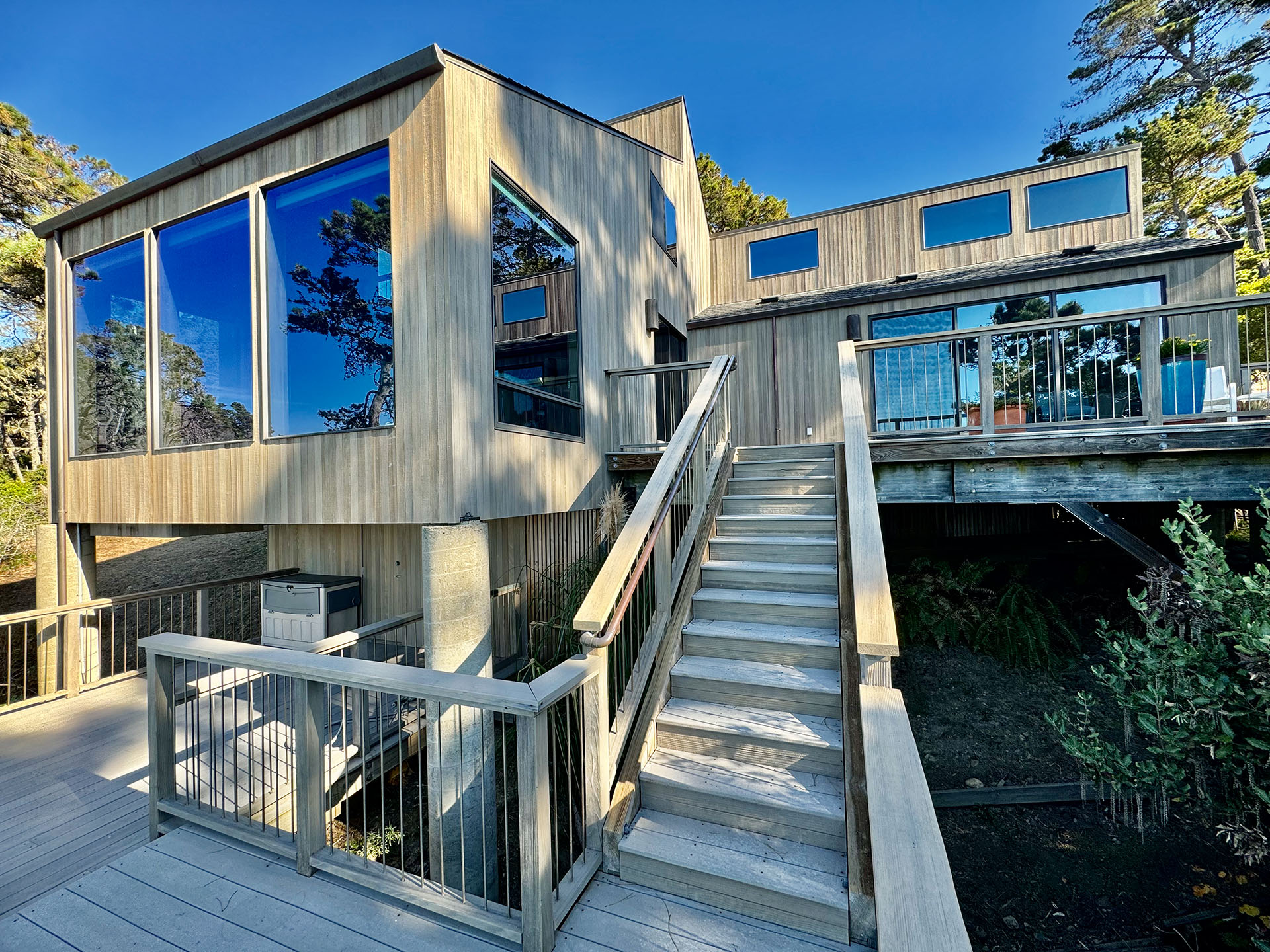 Extremely rare and stunning 1.56 acre private gated historical oceanfront estate in one of the most desirable Sea Ranch locations on a mean high tide lot. This is one of the first Sea Ranch homes built in 1969 by the original owner whose family is now offering for sale. This pristine 1614 sq. ft. 2 bed 2 bath beautifully crafted home built by Leonard Halverson and traditional architecture by Ray Hall blends seamlessly with its natural surroundings. The lot includes approx. 603 linear feet of ocean frontage and is adjacent to the former Halprin 5 acre estate to the north. Oversized sliding doors from the primary bedroom and living room open to 3 levels of decks facing unparalleled and unobstructed ocean views extending to rock outcroppings to the north and white water crashing on the rocks in your own cove below. Enjoy viewing breathtaking sunsets, watch families of seals in the cove, observe sea birds and spot migrating whales during their seasonal crossings. The Sea Ranch, a vibrant community on the beautiful Sonoma Coast offers a unique lifestyle. Amenities include 3 recreation centers with pools, tennis, saunas, 55 miles of scenic hiking trails, equestrian facilities, and a private airstrip-all nestled around a stunning 10 mile coastline. This home is handicap accessible.